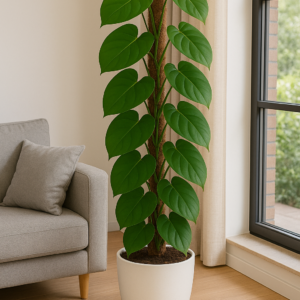Cây đứng vững nhờ cột leo, tạo điểm nhấn xanh nổi bật ở góc tường, hành lang, bàn tiếp khách…