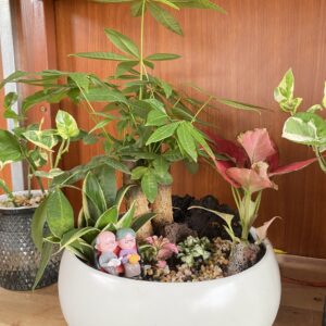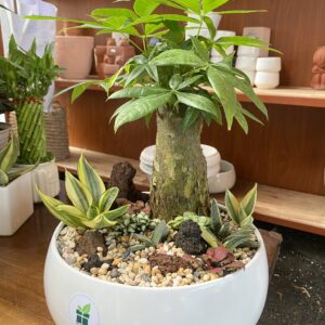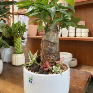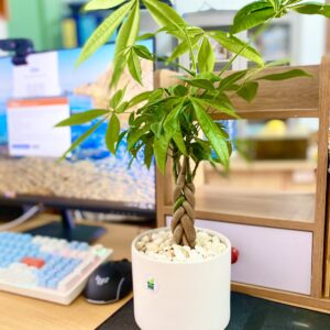 Cây Kim Ngân (tên khoa học: Pachira aquatica) là một trong những loại cây phong thủy được ưa chuộng nhất hiện nay, đặc biệt là khi được trồng trong các chậu nhỏ gọn để đặt trên bàn làm việc. Với vẻ ngoài xanh tươi, thân cây xoắn độc đáo và ý nghĩa phong thủy tốt đẹp, cây Kim Ngân để bàn không chỉ giúp trang trí không gian làm việc thêm sinh động mà còn được tin rằng mang lại tài lộc, thịnh vượng và may mắn cho chủ nhân.